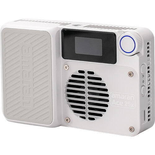 تحكم في الإضاءة عبر أزرار مدمجة أو لاسلكيًا عبر تطبيق amaran / Sidus Link. نظام التثبيت المغناطيسي (Ace‑Lock) ووضعا المروحة المزدوجان يجعلانه مثاليًا لسير العمل المحمول والتشغيل السريع.