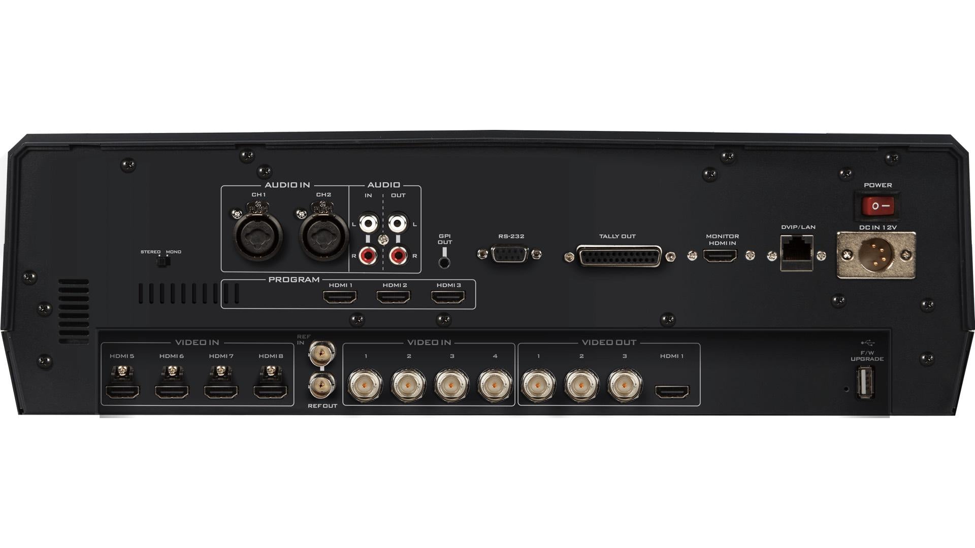 A bright 17.3-inch Full HD monitor provides clear multi-view output, while the integrated audio inputs, including XLR connections, ensure professional-grade sound integration. Designed for efficiency and flexibility, the HS-2600 is ideal for live events, conferences, houses of worship, education, and broadcast applications.