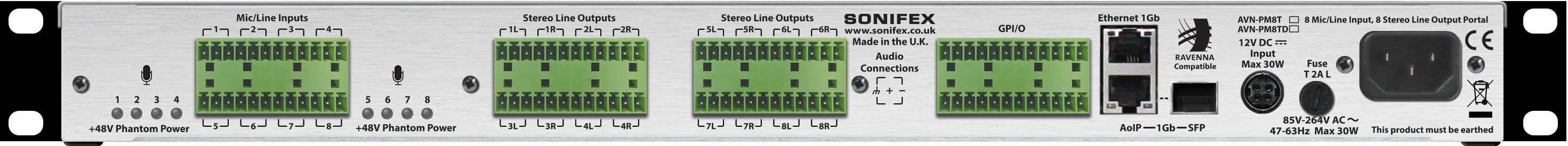 UBMS is an authorized distributor of Sonifex in Dubai, Abu Dhabi, UAE. Contact us or buy online Sonifex AVN-PM8 8 Mic/Line Inputs, 8 Line Outputs, Terminal Block, AES67 Portal with best price.
