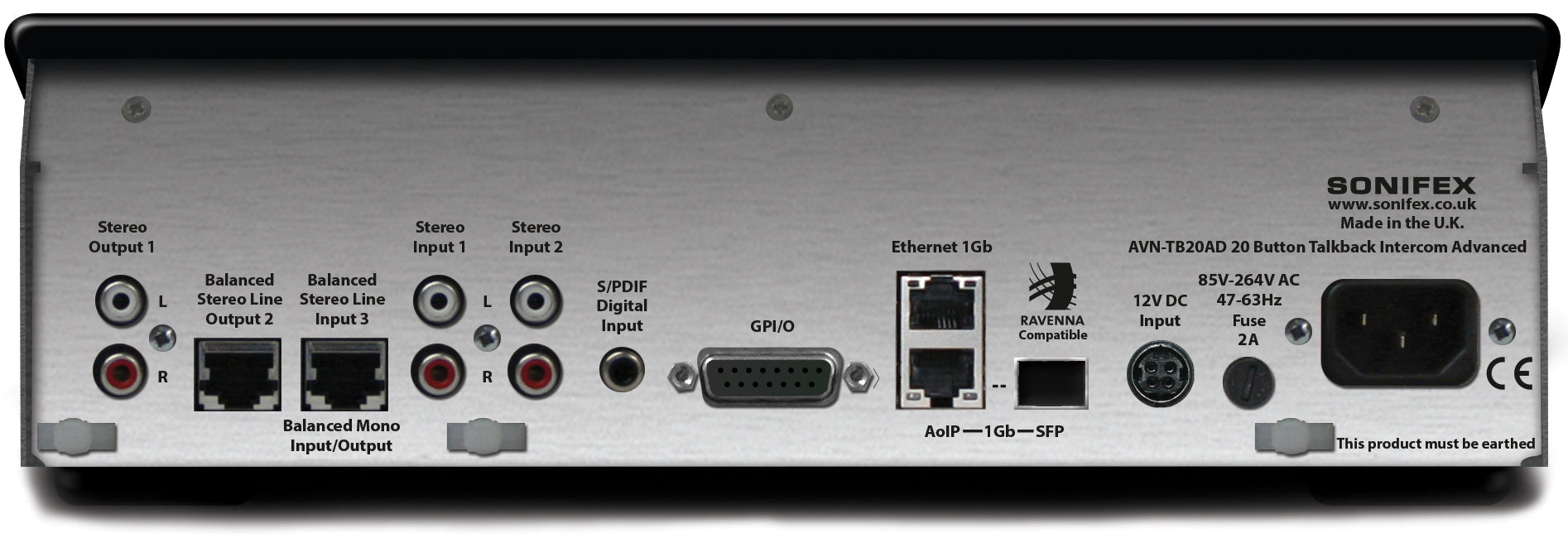 The Sonifex AVN‑TB20AD 20 Button Advanced Talkback Intercom, AoIP Desktop Portal is a high-capacity desktop communication system designed for broadcast, live events, theatre, and multizone production environments. It provides 20 illuminated talkback buttons plus dedicated Listen and Page functions for intuitive communication across multiple stations or areas within a facility. The unit supports both RAVENNA/AES67 audio-over-IP networking and analogue/digital input/output connectivity for flexible integration into legacy and modern audio infrastructures.