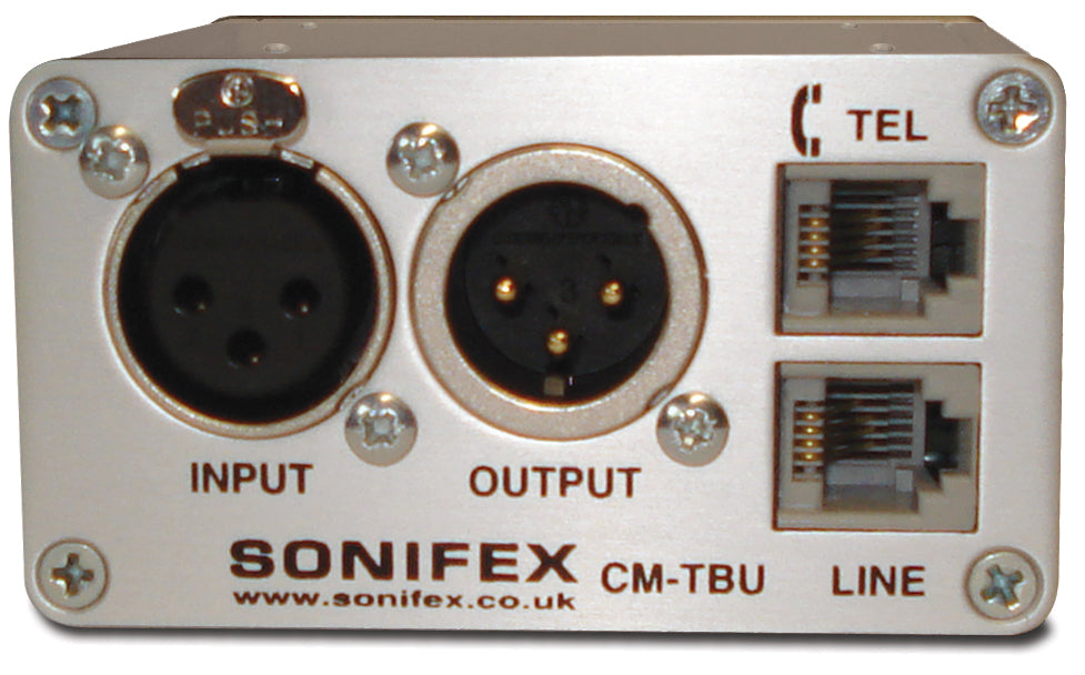 The Sonifex CM‑TBU Line Powered Telephone Balance Unit is a dedicated interface for connecting analogue PSTN telephone lines to broadcast, talkback, or commentator systems without requiring external power. Designed for use with compatible Sonifex talkback control units and commentary systems, it provides essential hybrid functionality for integrating telephone calls into professional audio workflows.