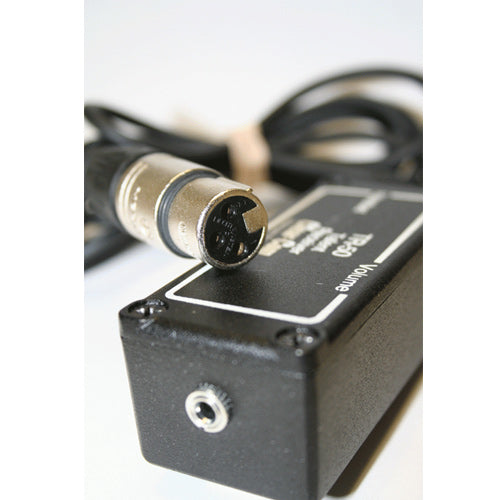 An amplified single-channel talent beltpack with volume control. It connects to the Program Interrupt controller with standard microphone cable. Mini earphone jack output. Includes talent ear set.