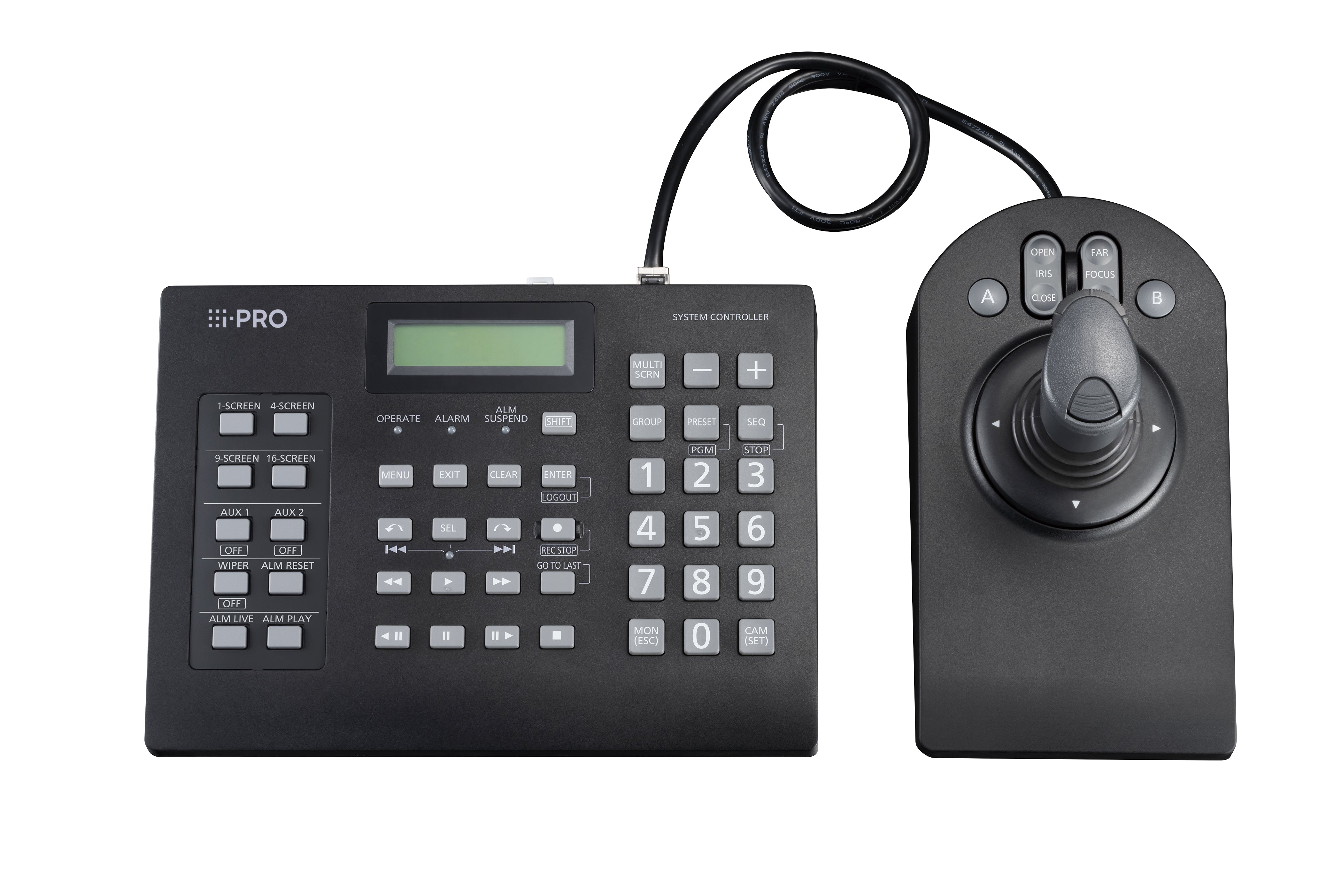 The i‑PRO WV‑CU980/G is an Ethernet‑based 3D joystick system controller designed to provide intuitive, precise control of network cameras and video surveillance systems. With a compact design and ergonomic joystick operation, it enables seamless pan, tilt, zoom (PTZ) camera control as well as recorder playback and selection functions, making it ideal for professional monitoring rooms and security operations.