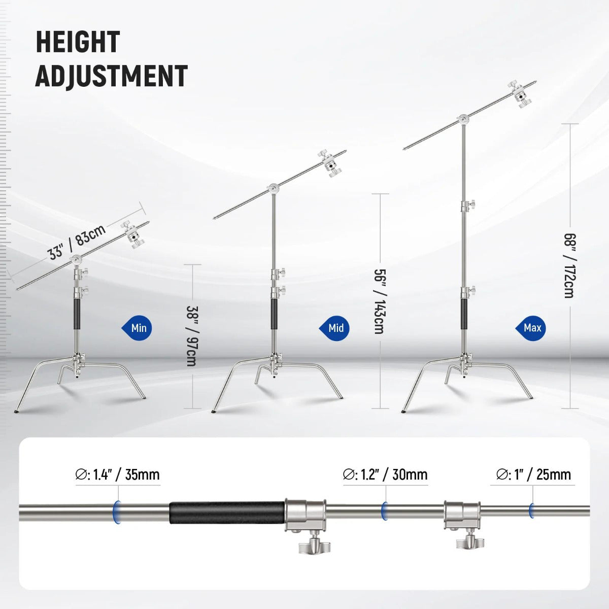 UBMS is an authorized distributor of NEEWER in Dubai, Abu Dhabi, UAE. Contact us or buy online NEEWER SC172 Pro Stainless Steel Heavy Duty C Stand With Boom Arm with best price.