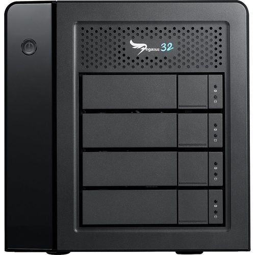 Designed for creative professionals, the Pegasus32 R4 40TB 4-Bay Thunderbolt 3 / USB 3.2 Gen 2 RAID Array delivers the speed, capacity, and protection needed for large projects and backups. Featuring four drive bays equipped with hot-swappable 10TB 7200 rpm hard drives, the 40TB array has a maximum data throughput of 2,700 MB/s. Its hardware-based controller supports RAID 0, 1, 1E, 5, 6, 10 configurations, and the fan-cooled drives are pre-configured for RAID 5. Devices connect to its two Thunderbolt 3 ports, which can transfer data to compatible computers at up to 40 Gb/s, or up to 10 Gb/s when connected to USB 3.2 Gen 2 Type-C devices. The ports support daisy chaining and deliver up to 85W of power to compatible laptops. There is also a DisplayPort 1.4 connector that supports 7680 x 4320 resolution 8K displays for large and highly detailed projects. The drives come pre-formatted for MacOS 10.14, but can be reformatted for Windows 10.