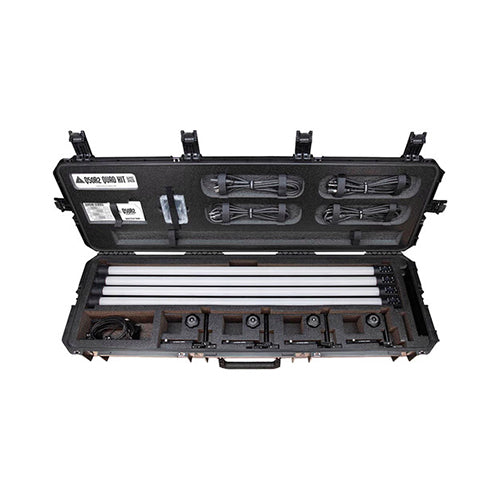 The Rainbow 2 Linear RGBX LED Light Quad Kit from Quasar Science combines four 4' RGBX linear LED lights in a durable travel case. The high-efficiency RGBX LED lights blend colors and brightness for millions of available colors and intensities, useful for creating fill and accents in both still imaging and video-based applications. It is a compact turnkey lighting solution for set lighting technicians, camera teams, art departments, and independent online content creators alike.