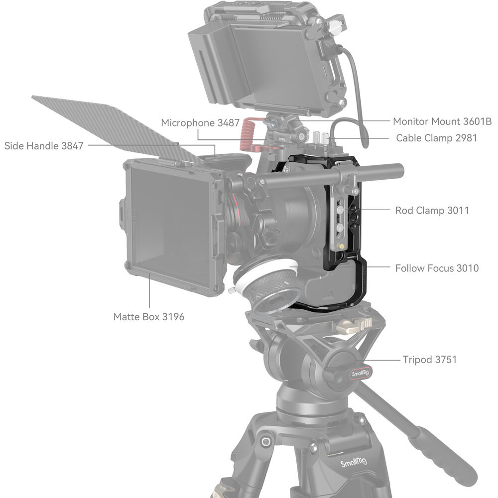 The lightweight aluminum Camera Cage from SmallRig provides accessory mounting and protection for your Canon EOS R6 Mark II camera. This formfitting cage maintains access to the camera's controls, battery, and SD card slot, and it features a variety of mounting options. The cage features an integrated Arca-type base for easy mounting onto a variety of compatible tripods.