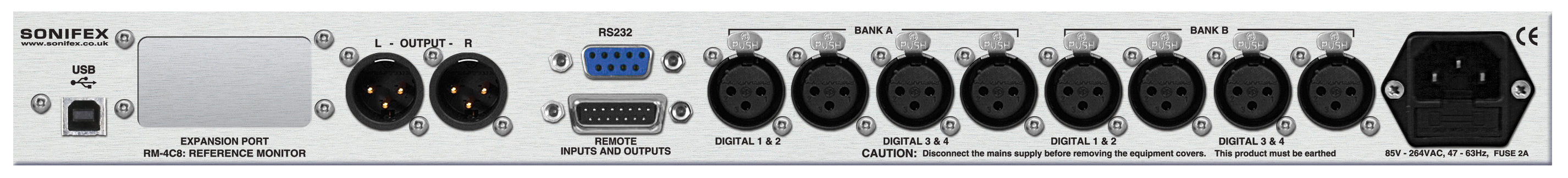 The Sonifex RM-4C8 Reference Monitor is a professional-grade rack-mount audio monitoring solution designed for broadcast, studio and AV environments. Featuring 4 bright, high-resolution 26-segment LED bargraph meters with selectable metering characteristics, and dual source selectors for left and right monitoring, the RM-4C8 gives precise visual and auditory control over up to eight audio channels. :contentReference[oaicite:0]{index=0}