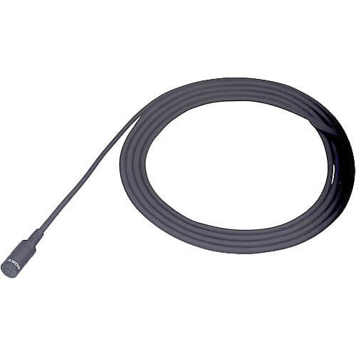 The Sony ECM-77 is a miniature omnidirectional lavalier microphone designed for professional broadcast, sound reinforcement, and recording applications. The condenser mic element's tiny profile can be easily concealed in performance and broadcast situations.