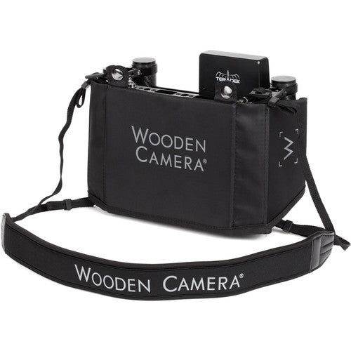 The Director's Monitor Cage v3 from Wooden Camera accepts virtually any LCD on-camera monitor up to 9", allowing it to be securely held and carried by a director or anyone who needs to have a personal monitor during a shoot. Featuring dual carbon fiber handgrips, aluminum rods, a padded neck strap, and a swing-away design for easy access to the back, this cage makes carrying a small monitor both simple and comfortable.